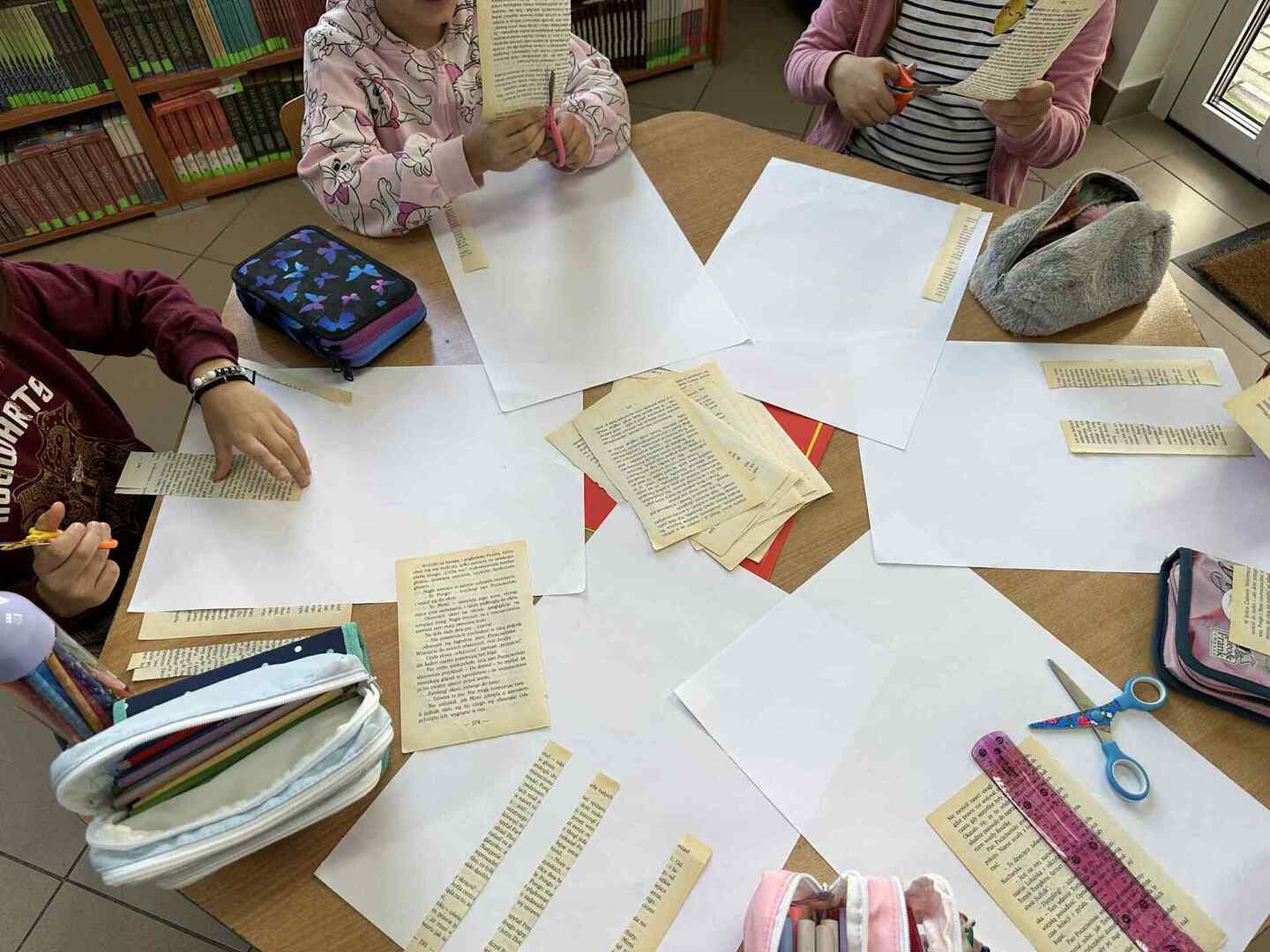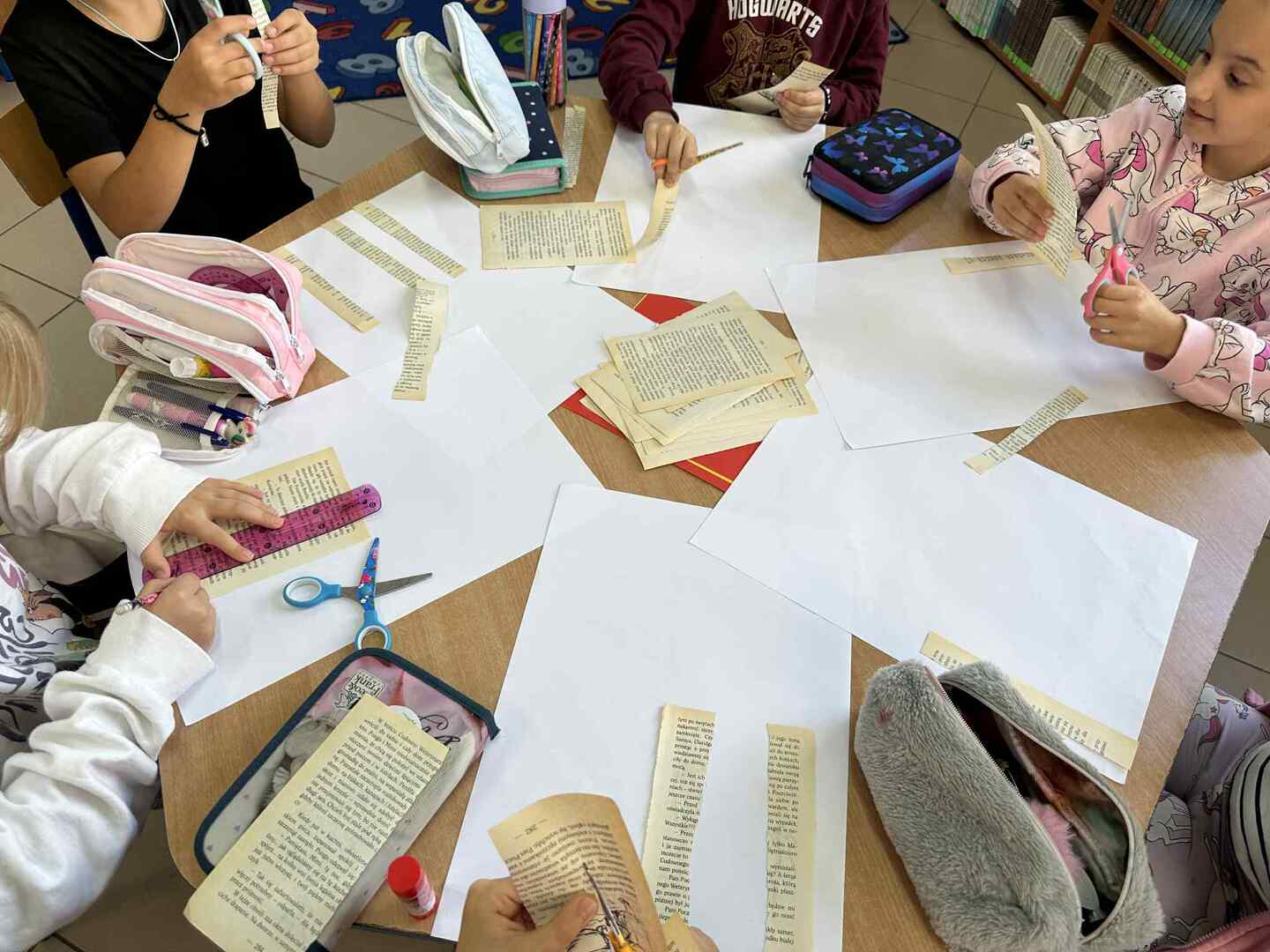 Dziś dzieci zamieniły się w prawdziwych artystów i stworzyły wyjątkowe ilustracje, które już wkrótce odmienią wygląd naszej biblioteki. 🎨✂️