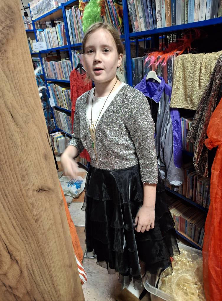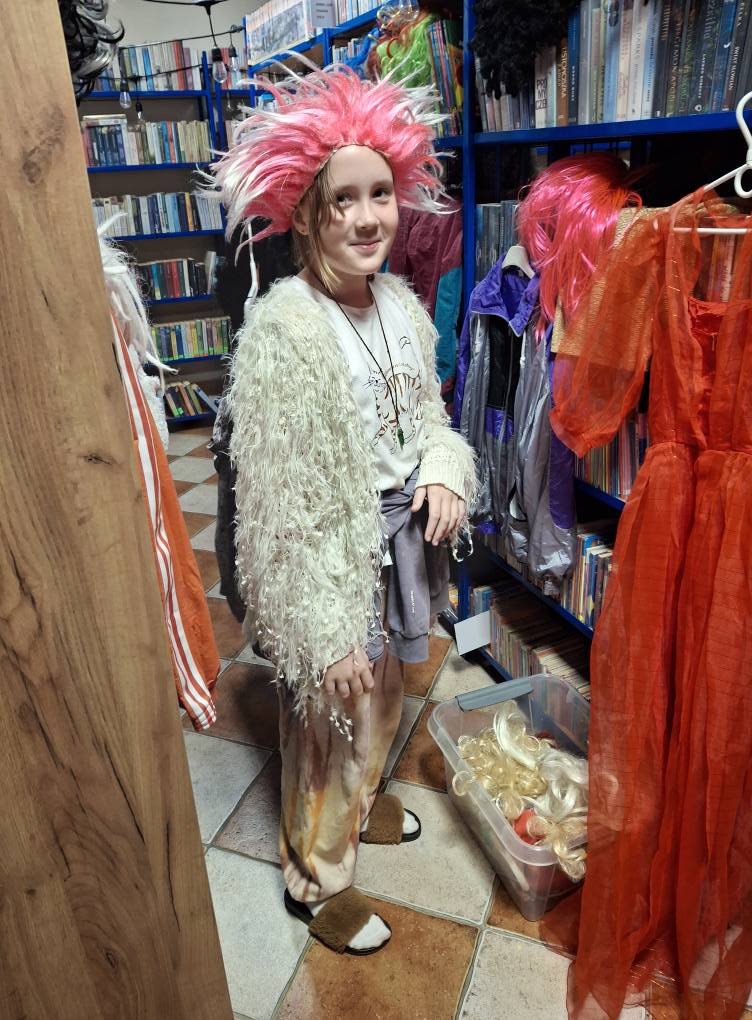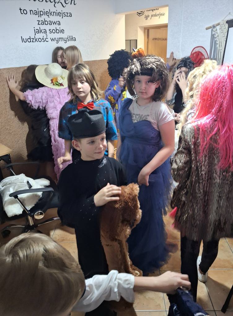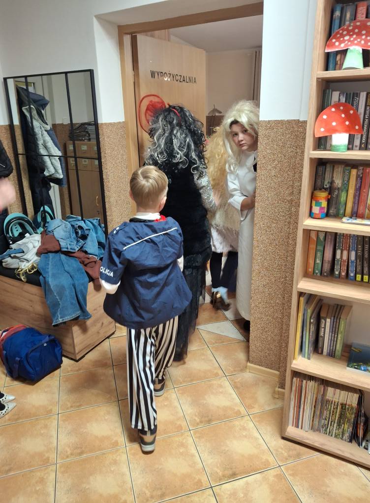 Wśród regałów rozbrzmiewał śmiech, muzyka i filmowe dialogi – wspólnie obejrzeliśmy „Biuro Detektywistyczne Lassego i Mai: Rabuś w pociągu”. Pokaz mody okazał się istną eksplozją kreatywności – przebieranki wywoływały salwy śmiechu, a pomysłowość dzieci nie miała końca.