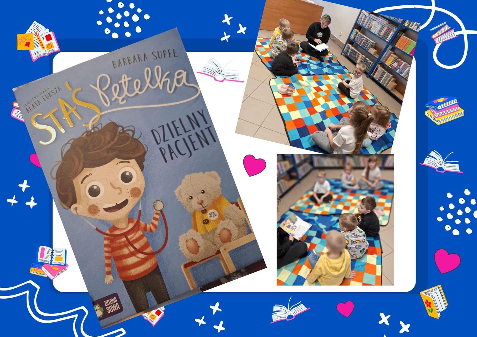 Dziś bibliotekę odwiedziły przedszkolaki z oddziału przedszkolnego w Olszynach. Dzieci z wielkim zainteresowaniem wysłuchały bajki pt. „Staś Pętelka – dzielny pacjent”. Po wysłuchaniu opowiadania rozmawialiśmy o tym, jak ważne jest dbanie o zdrowie oraz odwaga podczas wizyty u lekarza.