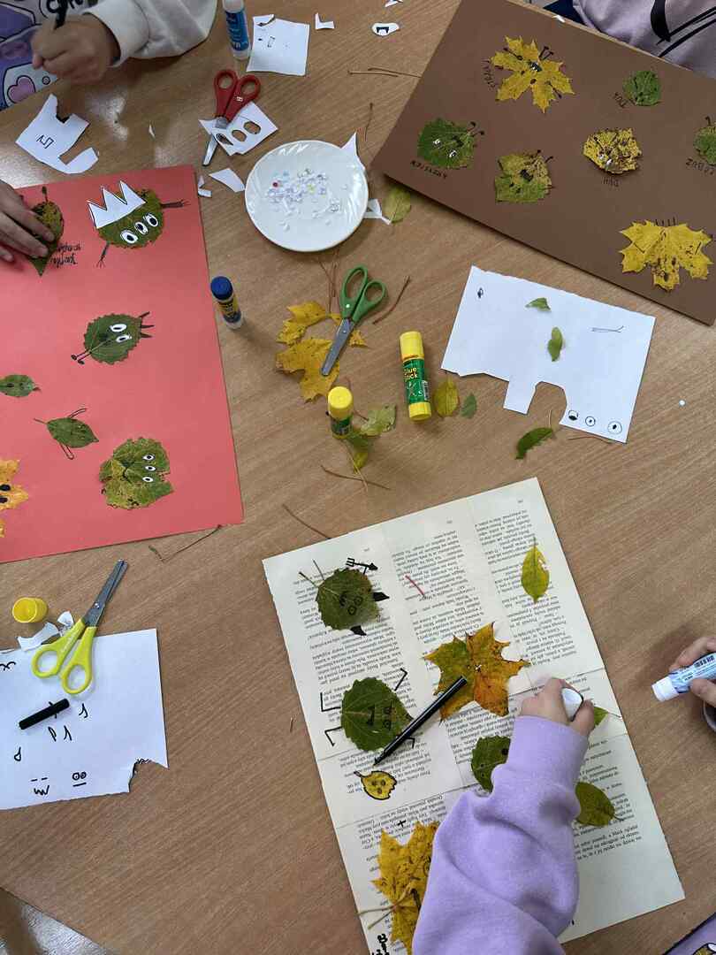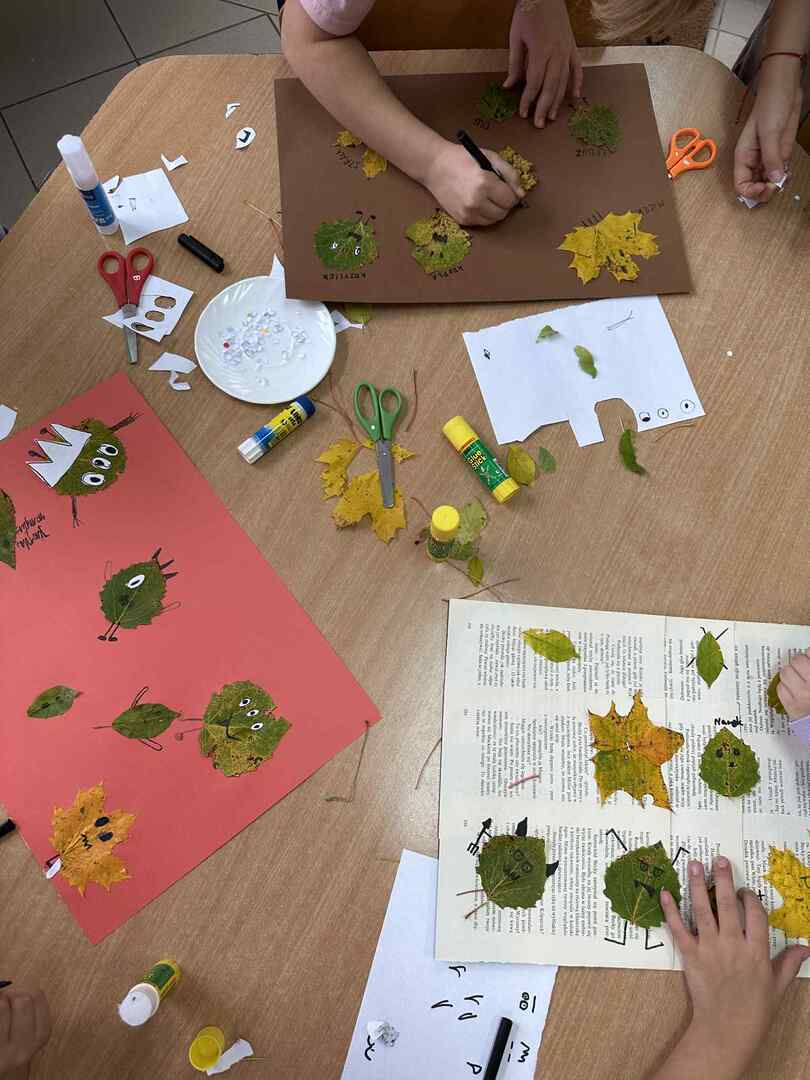 Podczas kreatywnych warsztatów dzieci tworzyły potworki z jesiennych liści 🍃👀🍂 – było mnóstwo śmiechu, pomysłów i kolorów! 😄