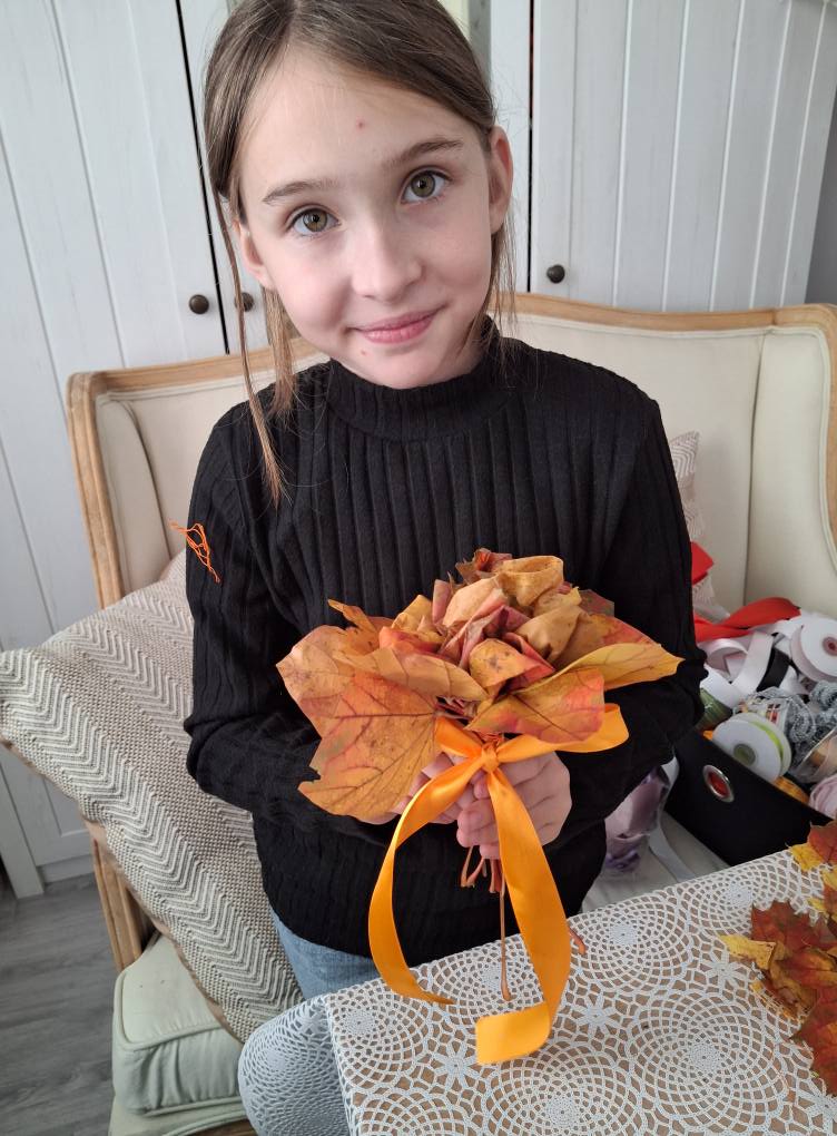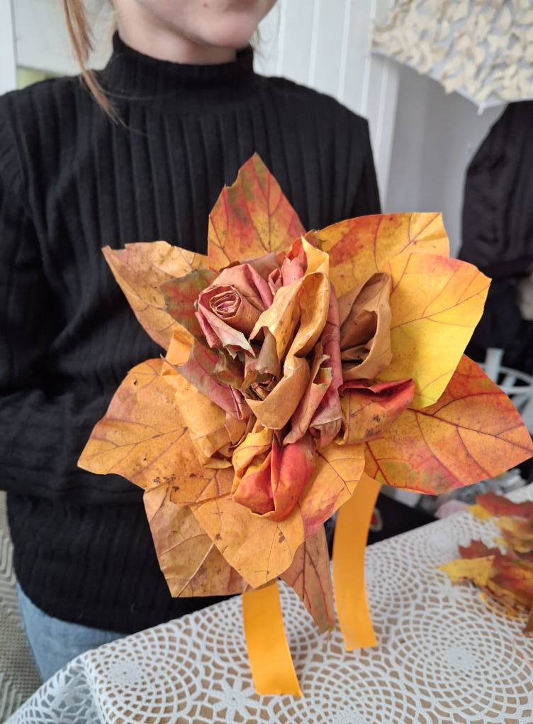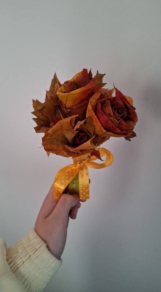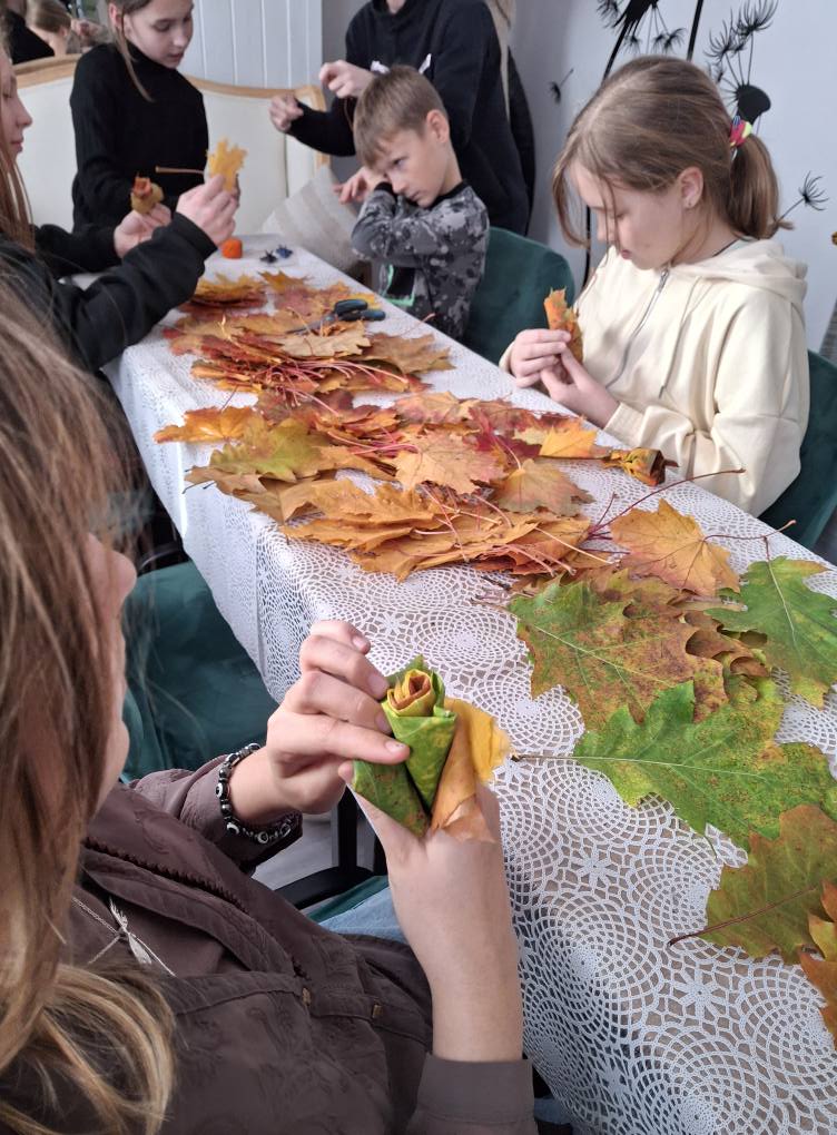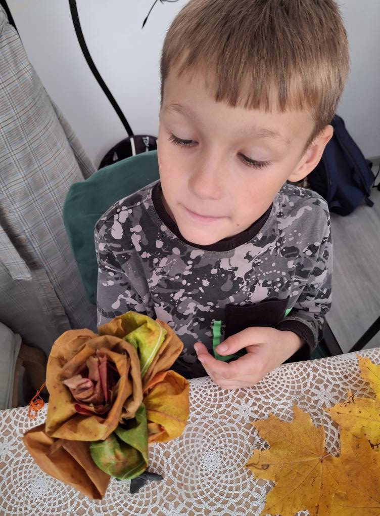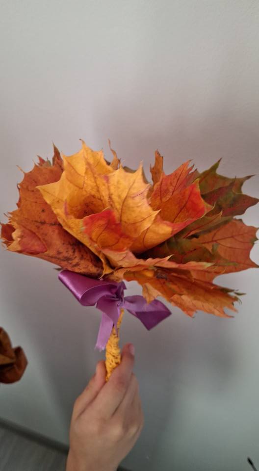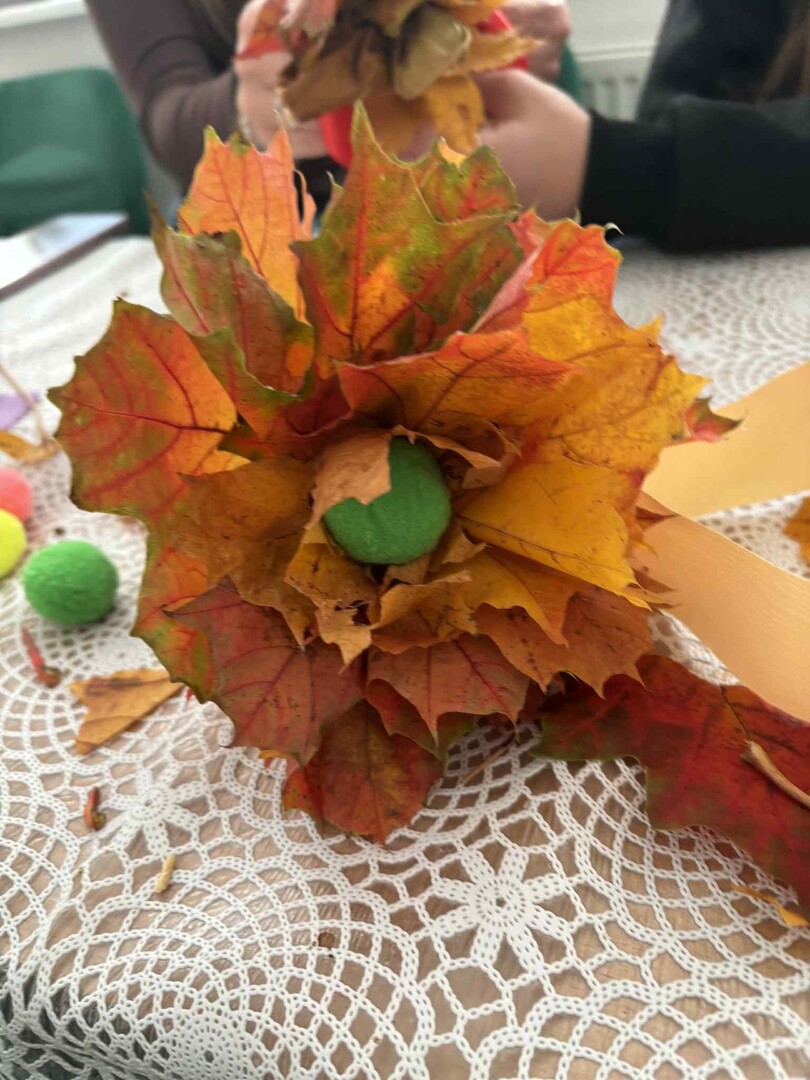 Dzieci zmieniły się w prawdziwych florystów i z zapałem tworzyły niezwykłe bukiety tylko z kolorowych liści.