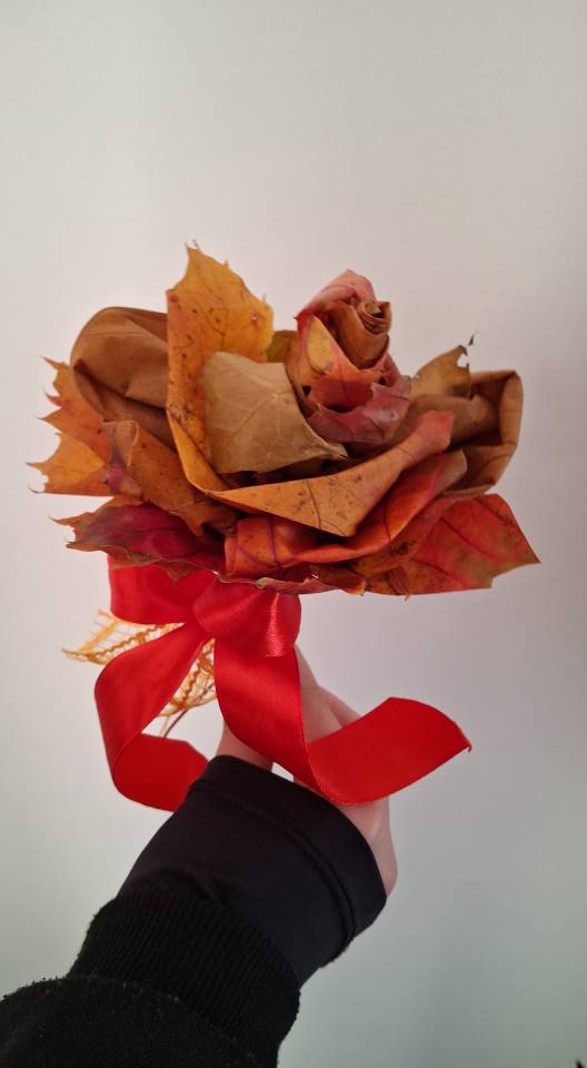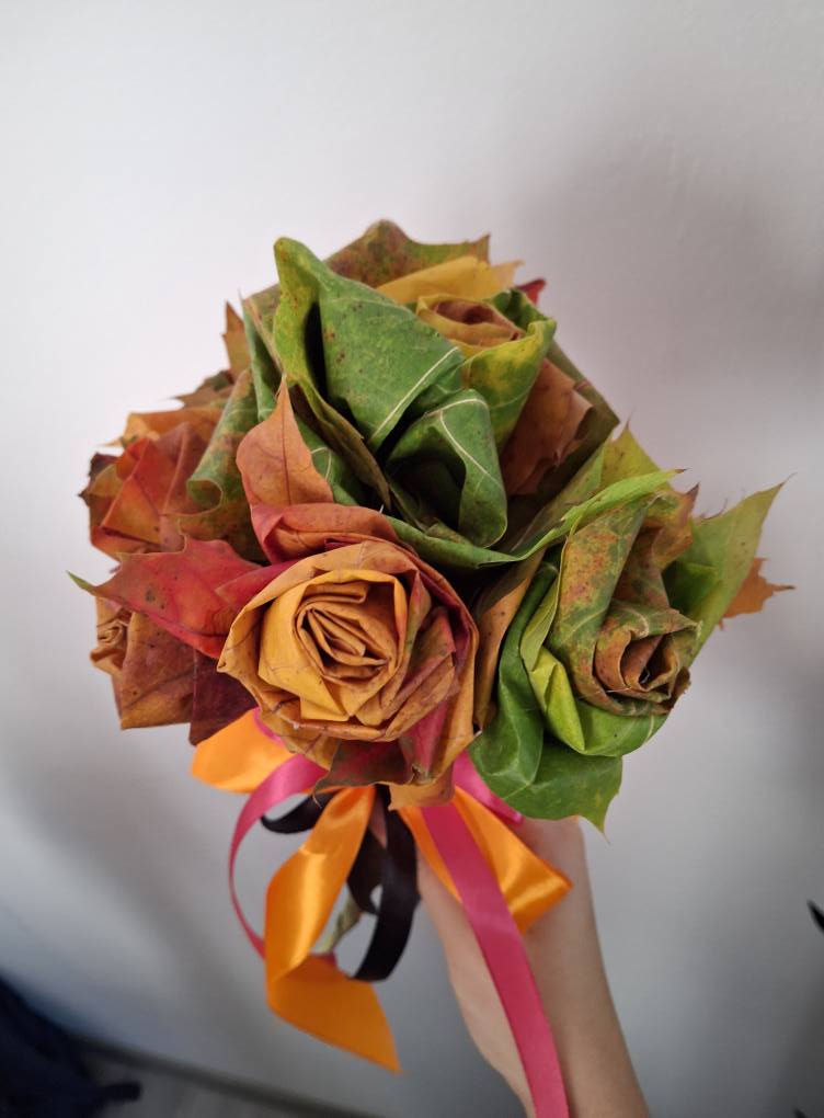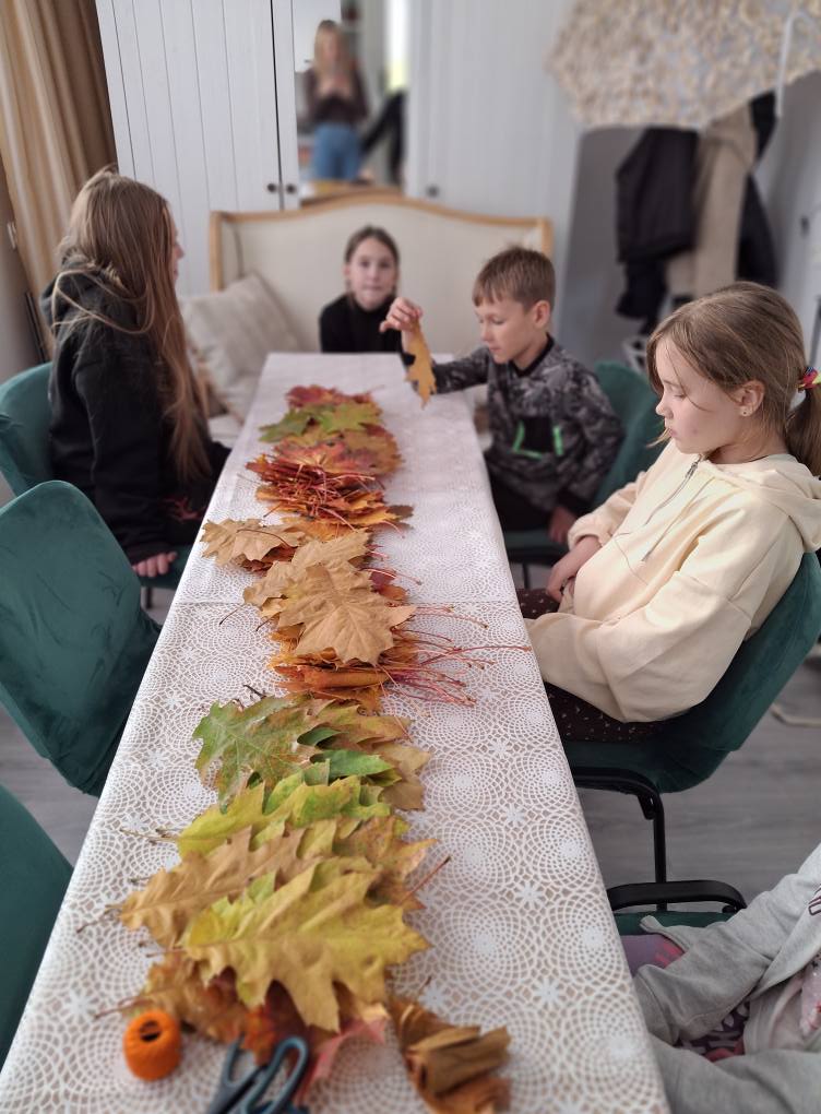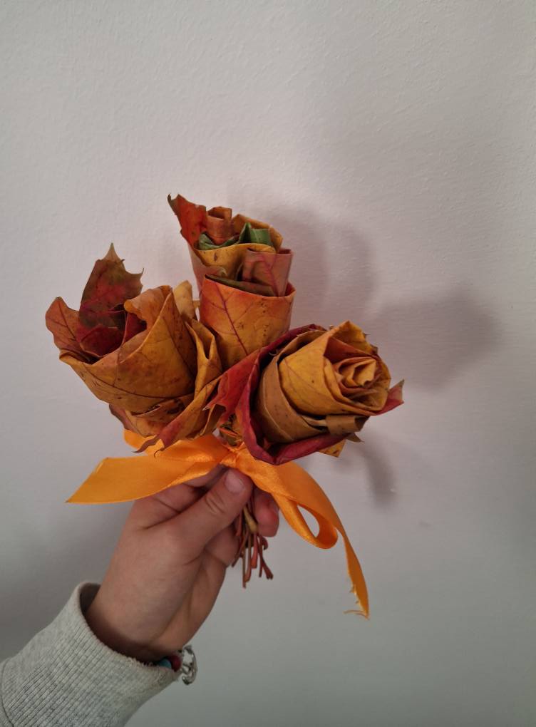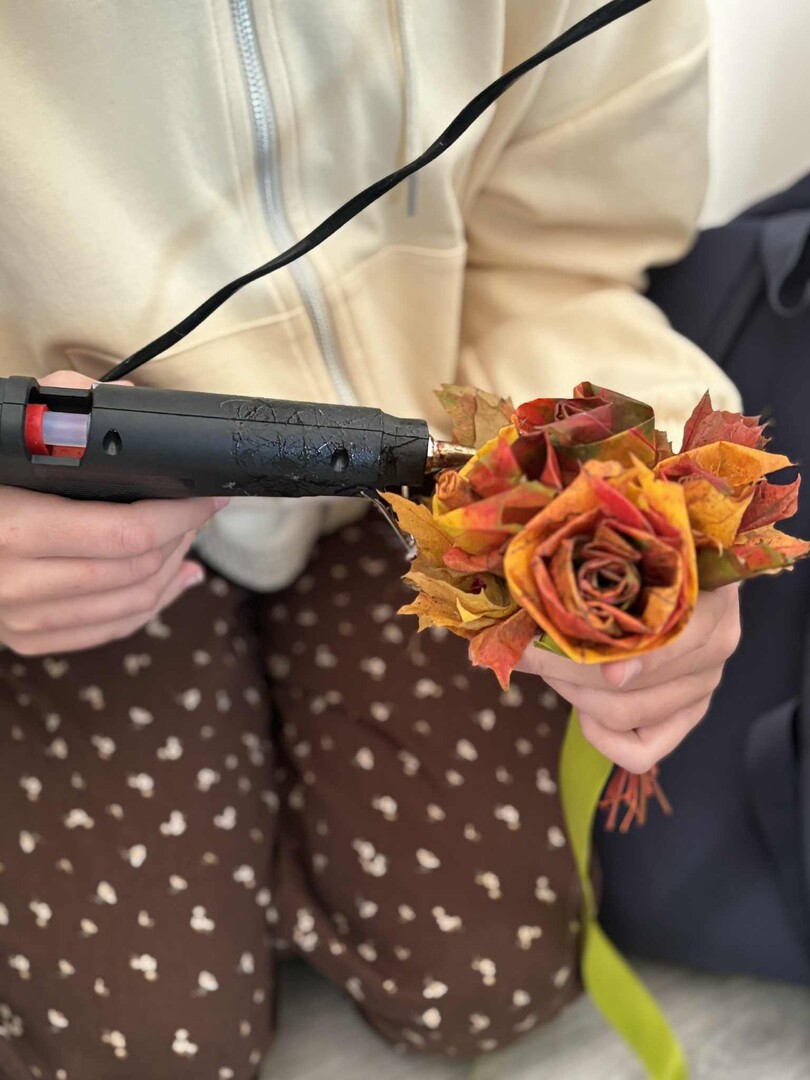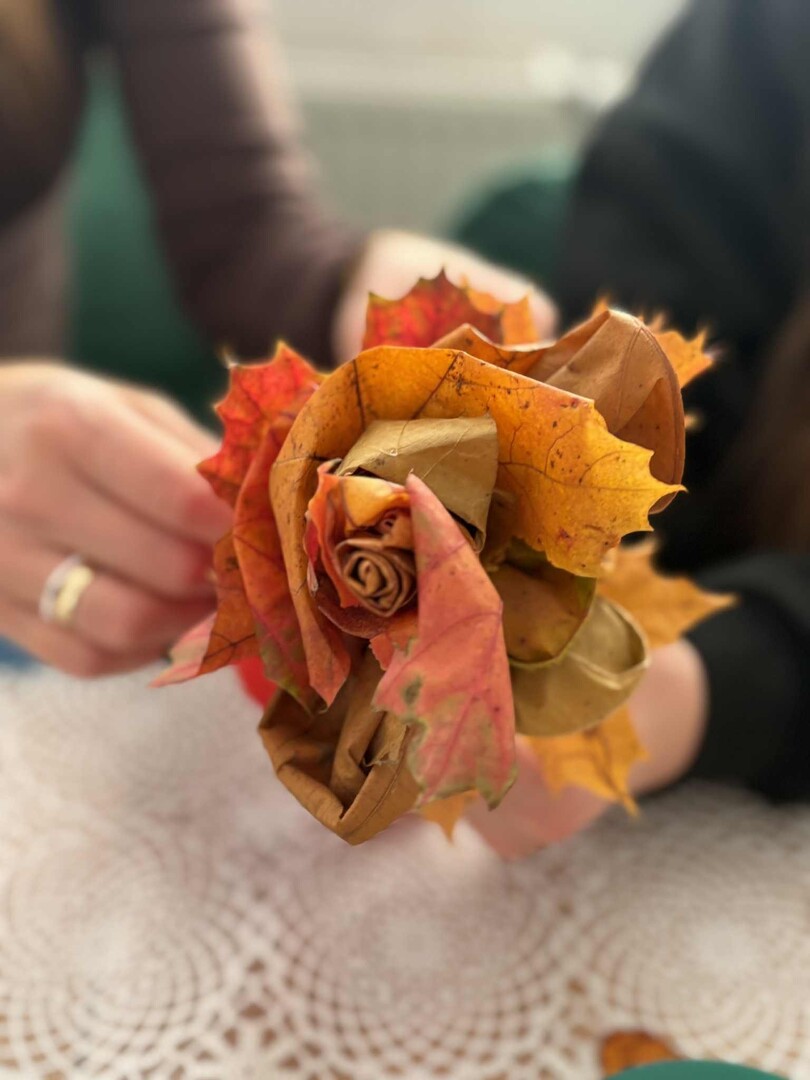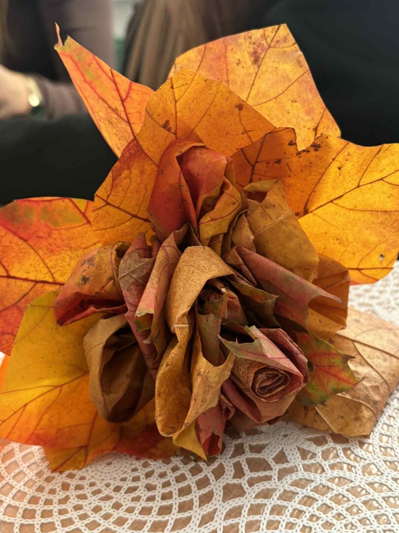 Dzieci zmieniły się w prawdziwych florystów i z zapałem tworzyły niezwykłe bukiety tylko z kolorowych liści.