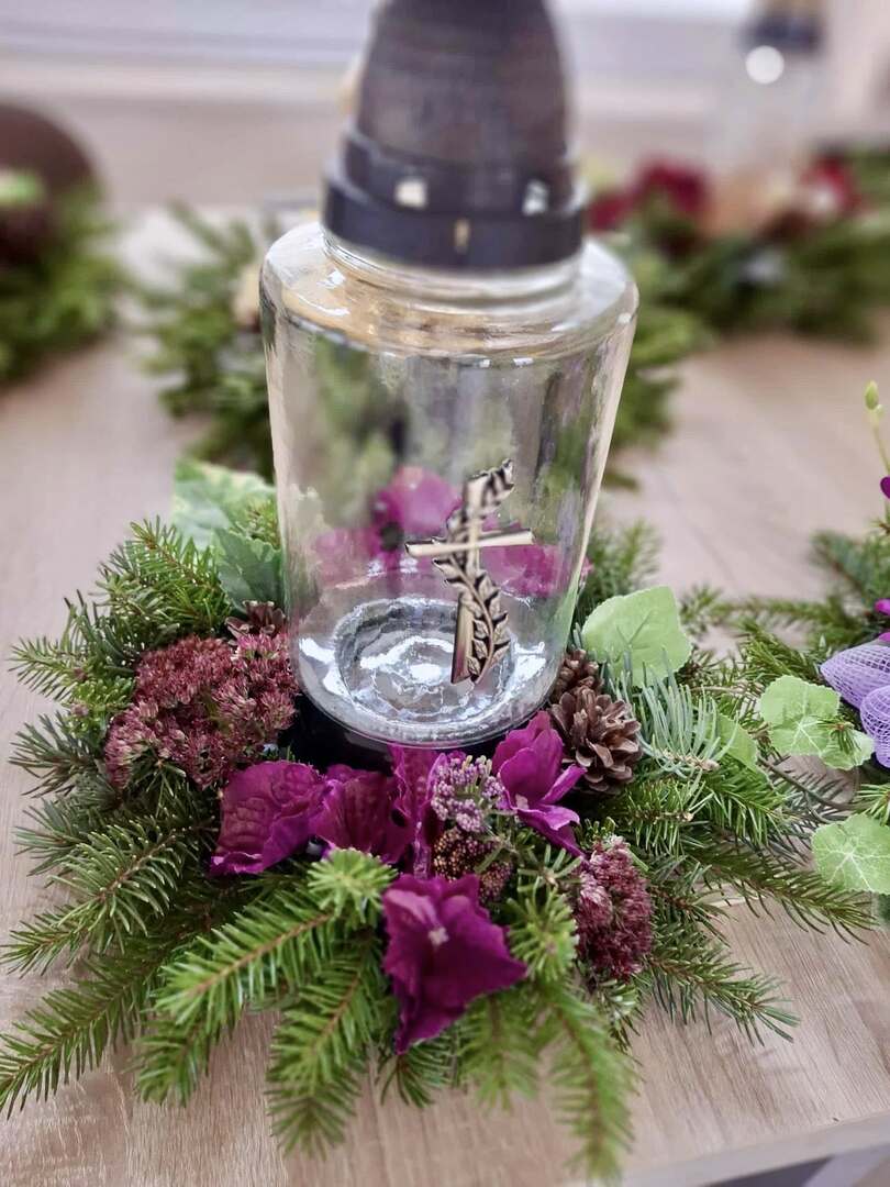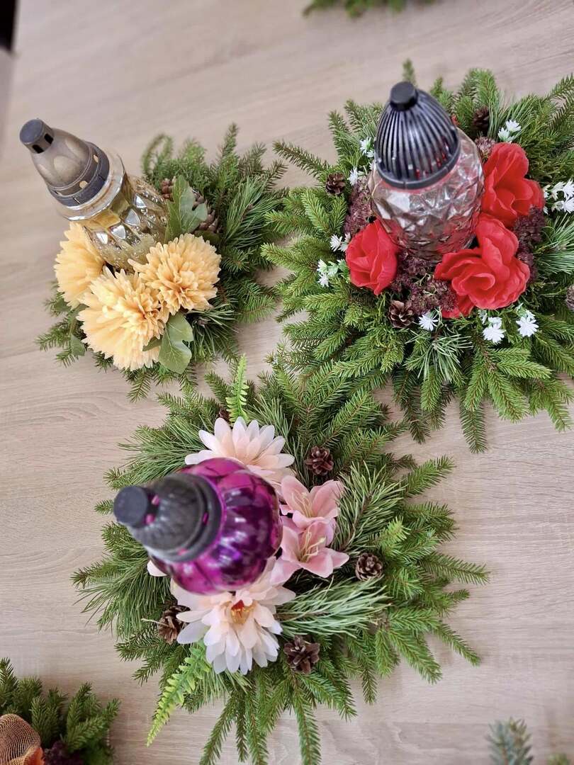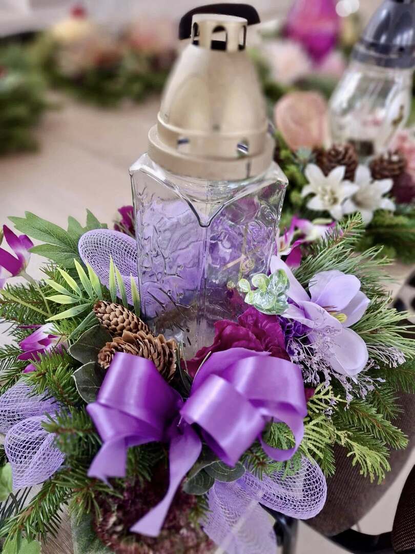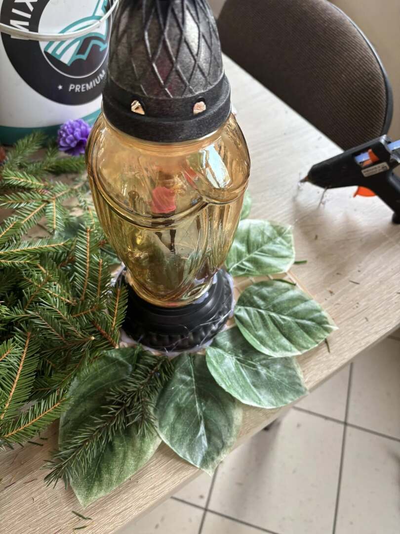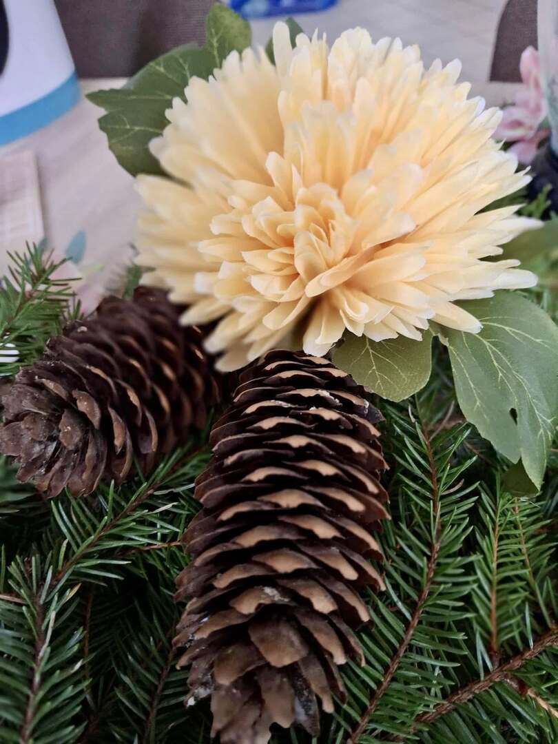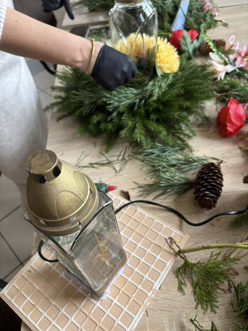 Zajęcia florystyczne miały wyjątkowy, refleksyjny charakter. Uczestnicy tworzyli ekologiczne dekoracje na nagrobki, wykorzystując świerk, tuję i oczyszczone znicze, które otrzymały nowe życie. Podstawy kompozycji powstały ze starych płytek – prostych, a zarazem symbolicznych, bo niosących ideę ponownego wykorzystania. Wspólna praca przy montażu gałązek, kwiatów i wstążek sprzyjała zadumie, rozmowie i cichej pamięci o bliskich. To spotkanie natury, wspomnień i troski o środowisko.