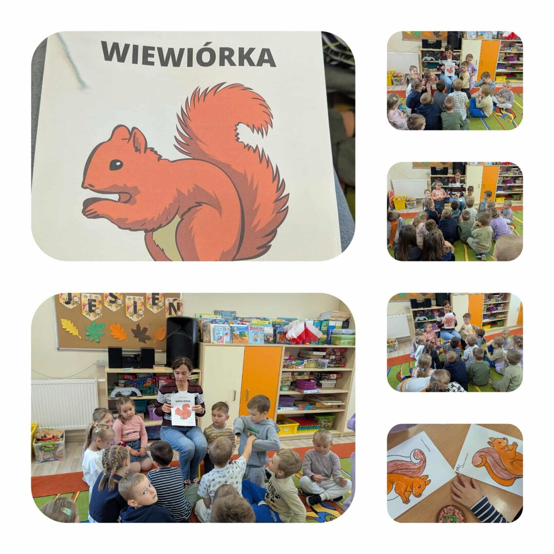 Dzieci z zainteresowaniem wysłuchały bajki pt. „Wiewiórka