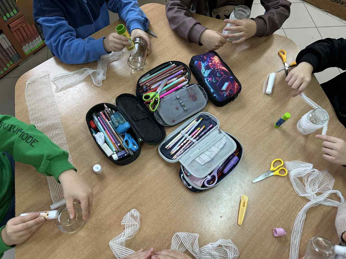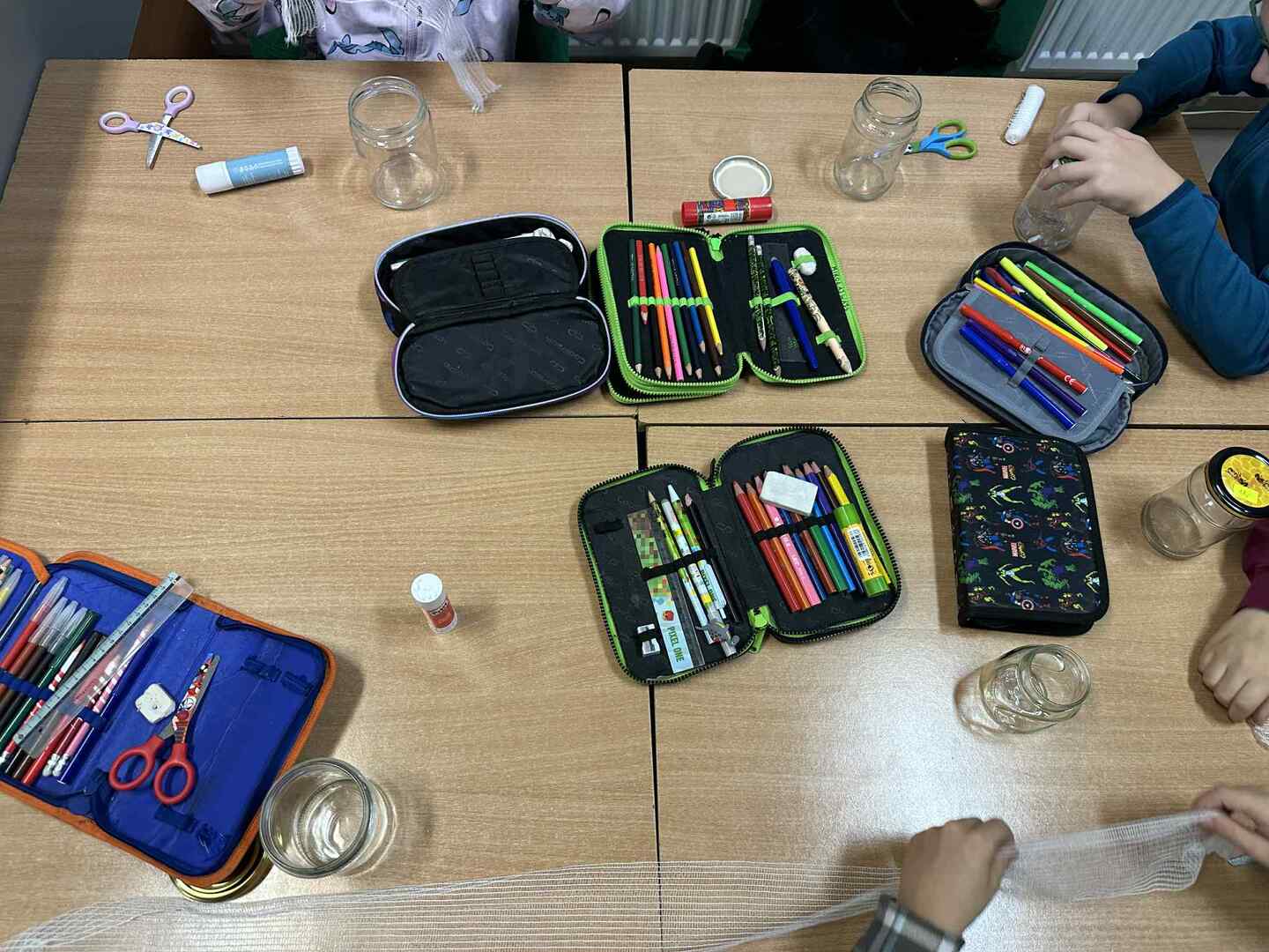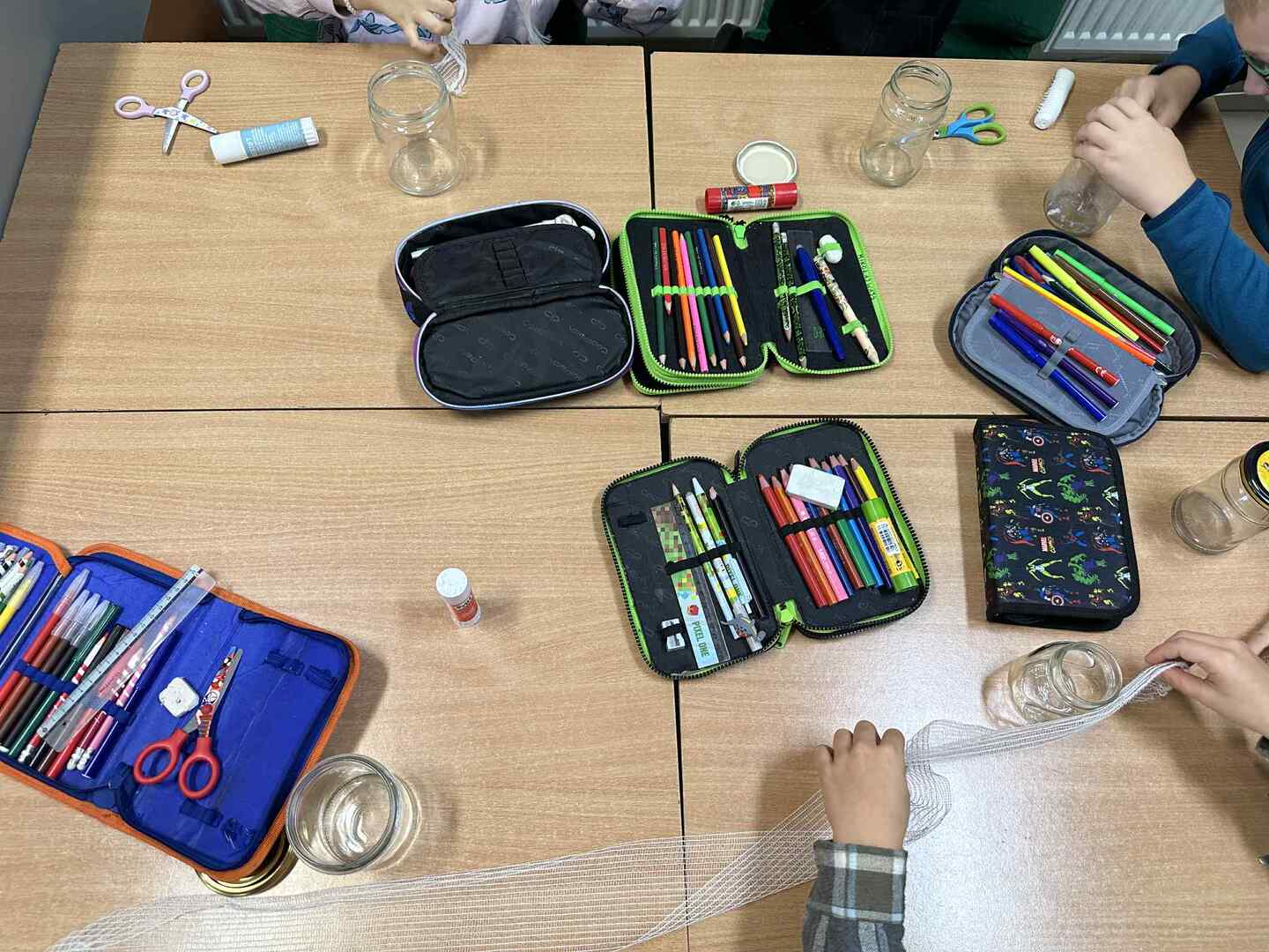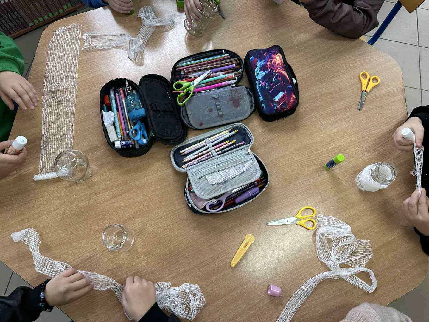 Podczas warsztatów dzieci zamieniły zwykłe słoiki w strasznie sympatyczne mumiowe lampiony 🩻💡 — owijały je bandażami, doklejały oczka i tworzyły jedyne w swoim rodzaju halloweenowe ozdoby!