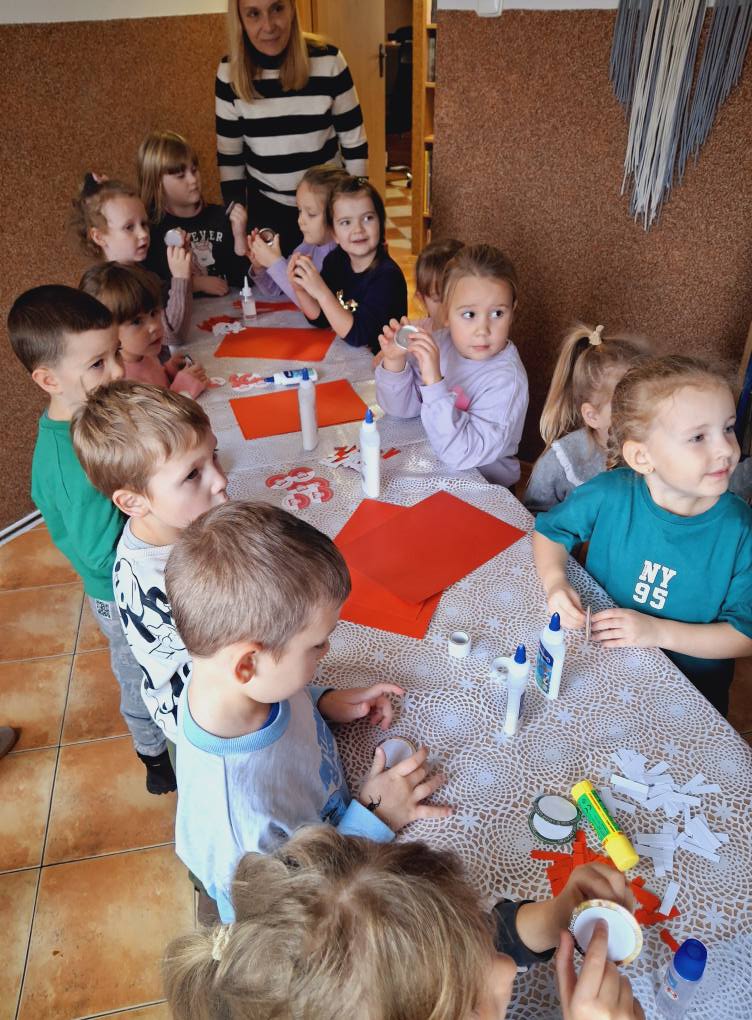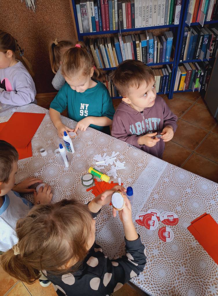 Dziś w naszej bibliotece gościliśmy przedszkolaków z ZSP w Lipowcu. Dzieci z ogromnym zaangażowaniem i radością przygotowały kotyliony z okazji Święta Niepodległości – 11 listopada.