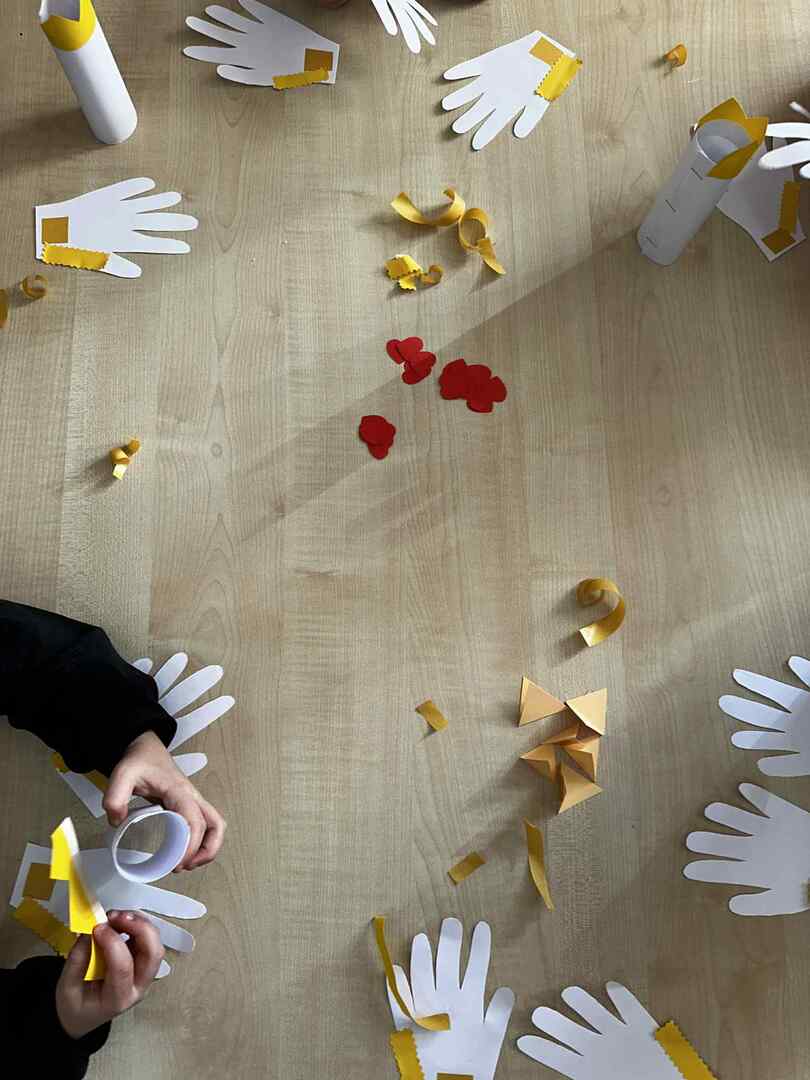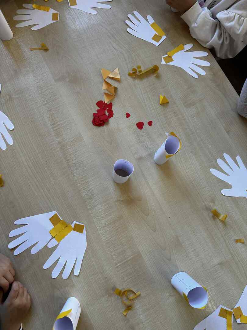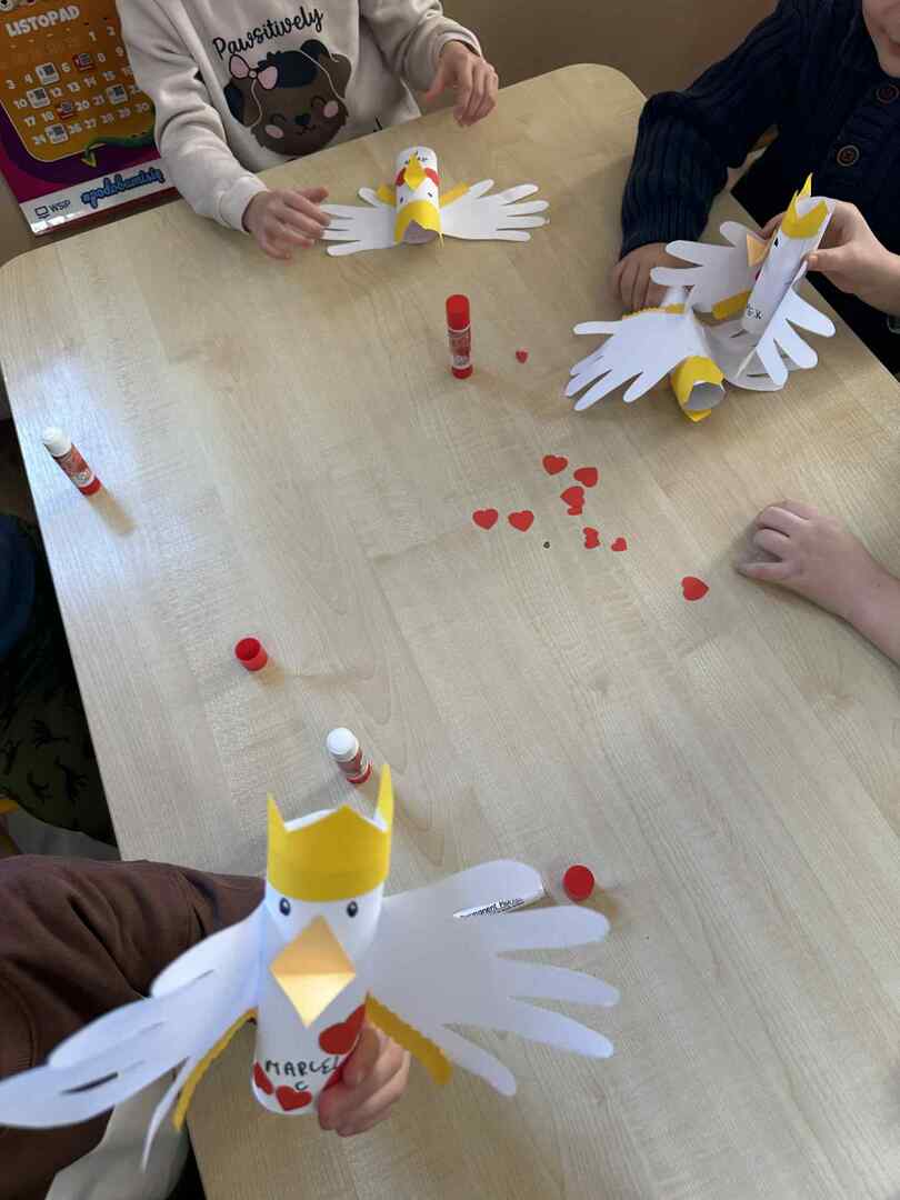 Dzieci z zapałem tworzyły piękne orły z papieru, a ich skrzydła powstały z odbitych dłoni, symbolizując wspólnotę i siłę naszej małej ojczyzny