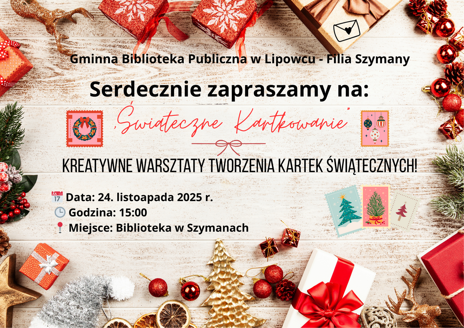 Biblioteka w Szymanach serdecznie zaprasza dorosłych mieszkańców na kreatywne warsztaty tworzenia kartek świątecznych!