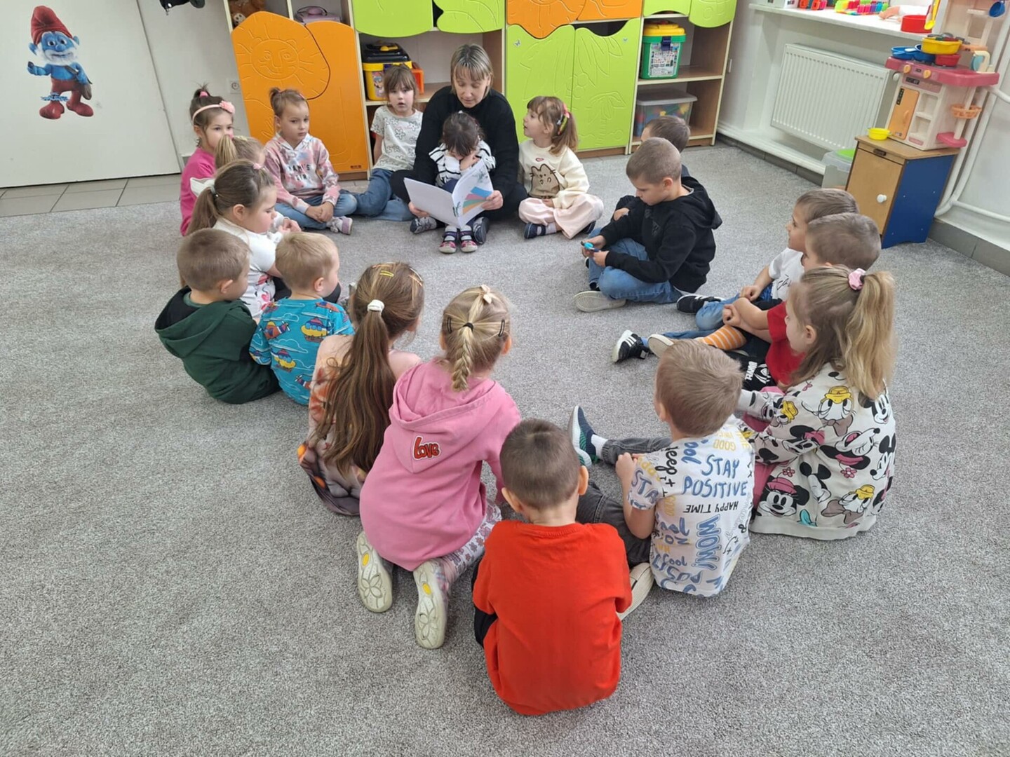 W dniu 22 listopada, w związku z obchodami Dnia Kredki, przeprowadzono zajęcia z dziećmi dotyczące twórczej roli kolorów w codziennej zabawie. Przedszkolaki wysłuchały bajki o zielonej kredce, dzięki której poznały znaczenie koloru zielonego oraz rozwijały wyobraźnię. Po wysłuchaniu opowiadania dzieci chętnie dzieliły się swoimi spostrzeżeniami i uczestniczyły w krótkiej rozmowie na temat kolorów i ich wykorzystania w pracach plastycznych.