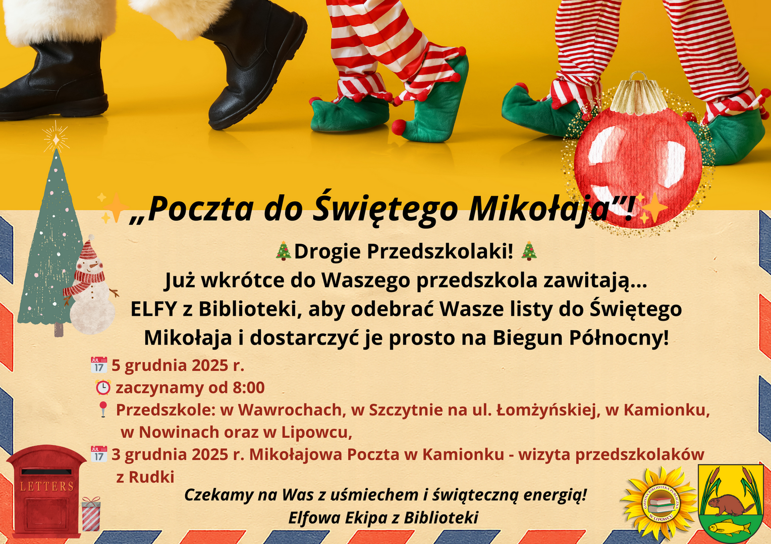 Przygotujcie swoje marzenia, życzenia i pięknie ozdobione listy – my, elfowa załoga biblioteczna, zadbamy o to, by trafiły do samego Mikołaja. ![]()