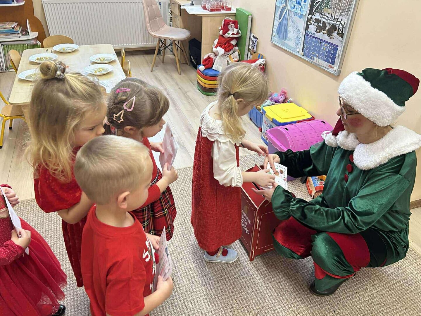 W każdej sali witały je rozpromienione maluchy, gotowe przekazać swoje najskrytsze marzenia. Do czerwonych, mikołajowych skrzynek trafiały listy pełne dziecięcej wyobraźni, nadziei i pięknych życzeń. Pomocnice Mikołaja dbały o to, by każdy list został zebrany i jak najszybciej wyruszył w daleką drogę do Laponii — prosto do rąk samego Świętego.