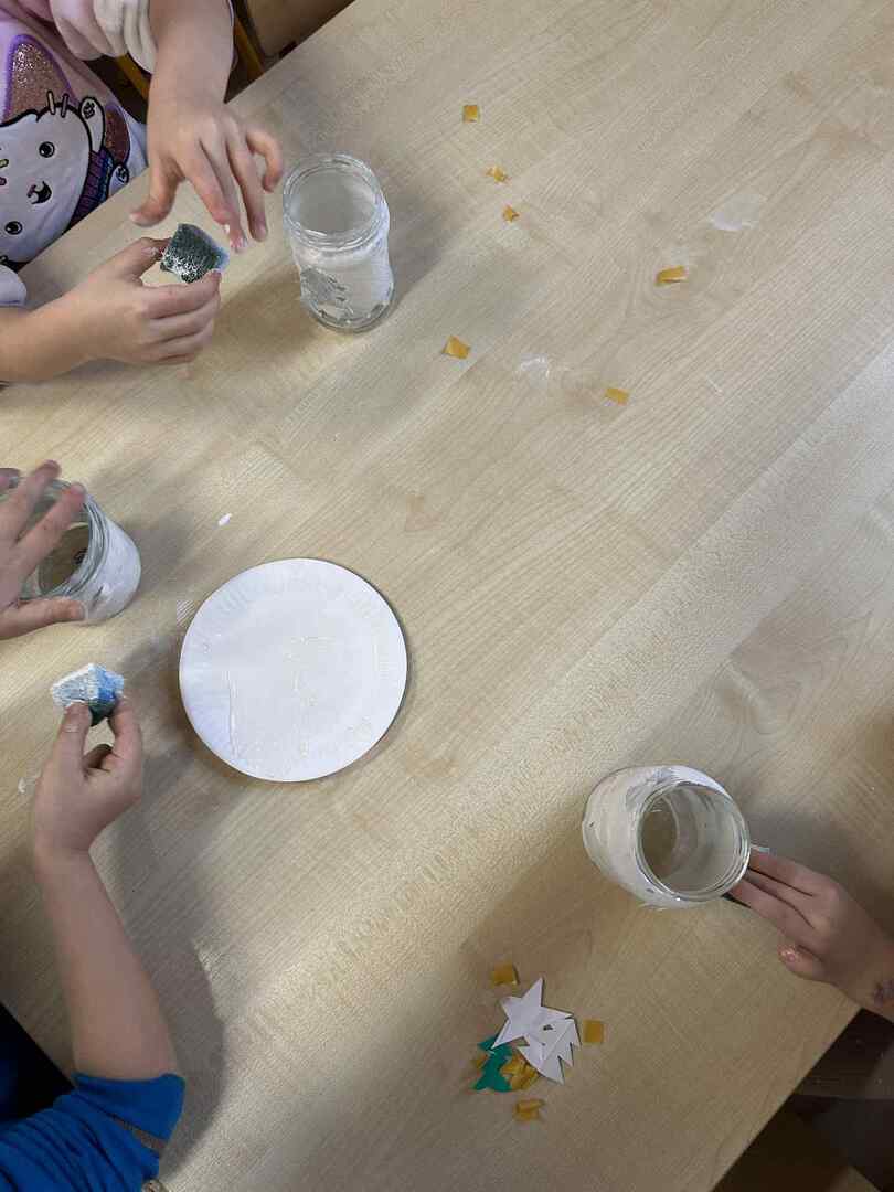 Malowane farbami słoiki zamieniły się w śnieżne krajobrazy, choinki, gwiazdki i wesołe bałwanki. Każdy lampion rozbłysnął swoją wyjątkową zimową magią!