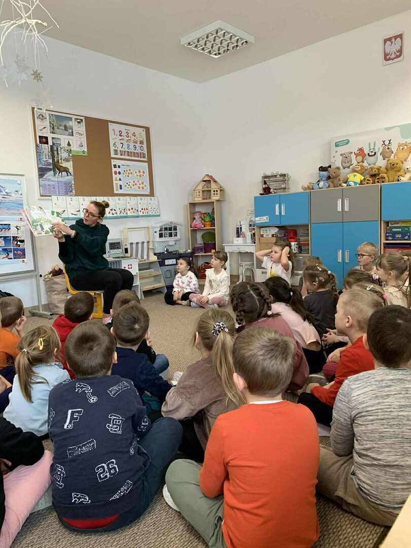 Dzieci z ogromnym skupieniem słuchały historii, która pokazuje, że zmarszczki to o wiele więcej niż tylko ślady czasu – każda z nich skrywa inną opowieść i staje się magiczną bramą do podróży w przeszłość. Razem z małą bohaterką przedszkolaki poznawały najważniejsze wspomnienia babci, ucząc się empatii, szacunku i wrażliwości wobec starszych.